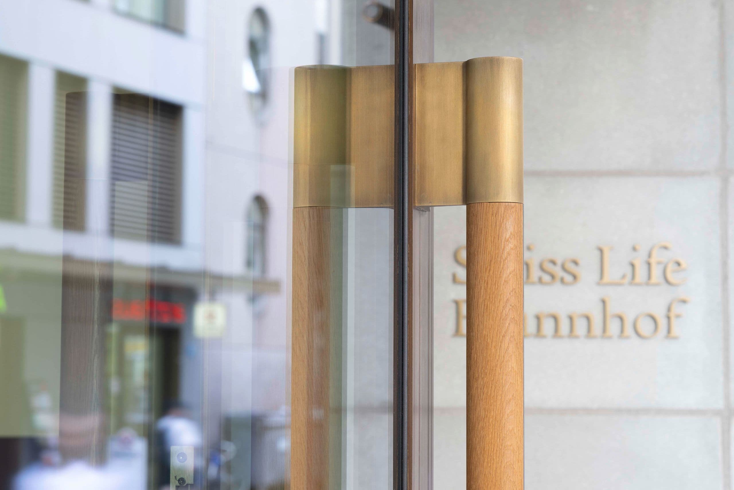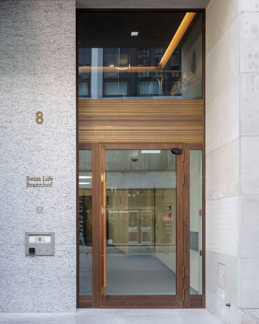 Das denkmalgeschützte Brannhofgebäude an der Zürcher Bahnhofstrasse wurde im Jahr 2022 saniert. Delfosse hat die historische Bausubstanz mit verschiedenen Baubronze-Elementen veredelt.